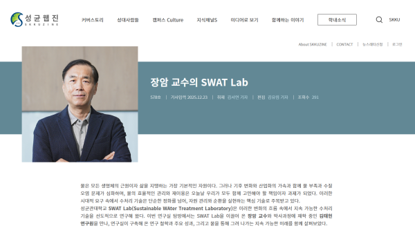 GALLERY 성균웹진 578호 연구실 탐방 인터뷰 수록 2026-01-02 본문 SWAT Lab이 성균웹진 578호 연구실 탐방란에 소개되었습니다. 관련링크 https://webzine.skku.edu/skkuzine/section/culture03.do?articleNo=13355… LINK : 84 목록