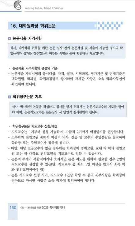 [학사공지] 대학원 학사제도 및 졸업요건 안내 2023-10-27