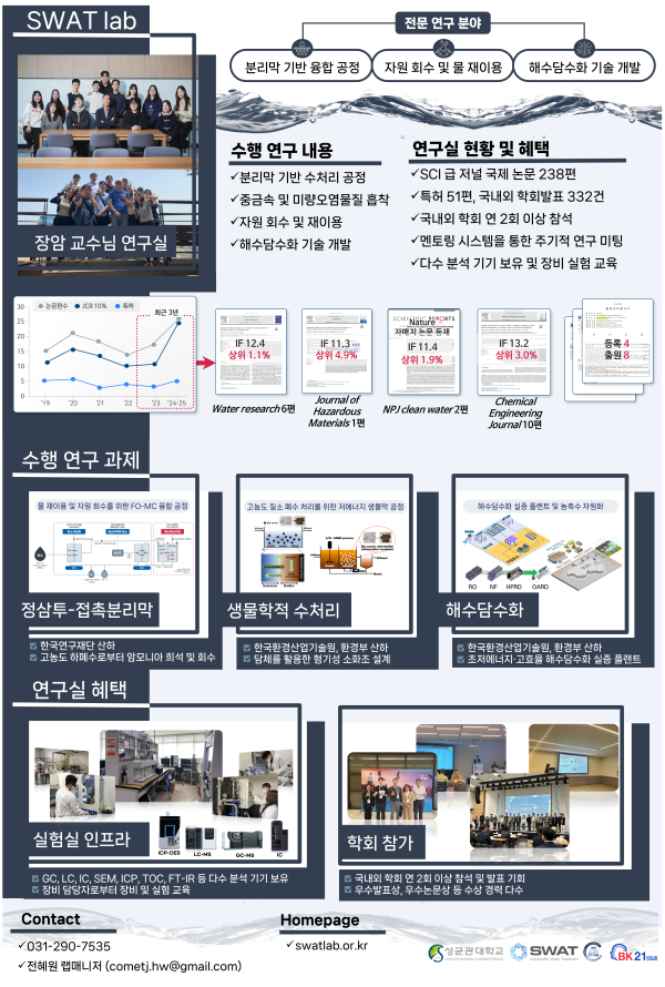 지속 가능한 수처리 및 대학원에 관심이 있는 학생들을 모집하고 있습니다.